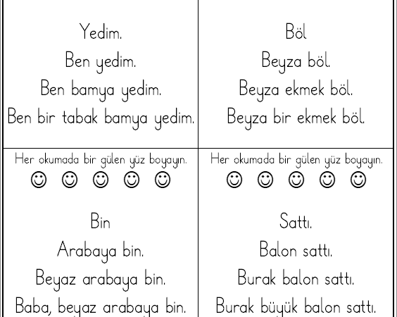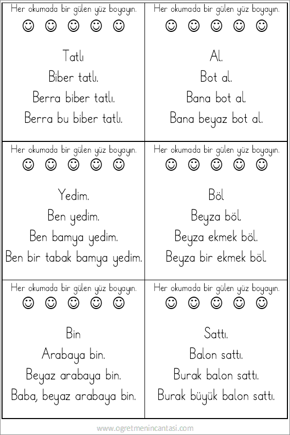 b harfi hızlı okuma metinleri,  her bir sayfada 6 farklı hızlı okuma metni vardır. Kolay kelimelerle oluşturulmuş karesel metin hazırlığı olarak değerlendirilebilir. Okumanın takibi için gülen yüz boyanma bölümü eklenmiştir.  Faydalı olması dileğiyle.