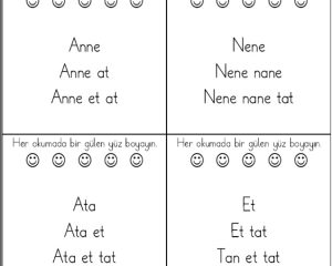 T harfi hızlı okuma metinleri,  her bir sayfa 6 öğrenci içindir. Kolay kelimelerle oluşturulmuş karesel metin hazırlığı olarak değerlendirilebilir. Okumanın takibi için gülen yüz boyanma