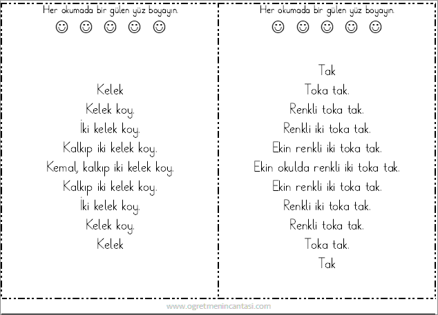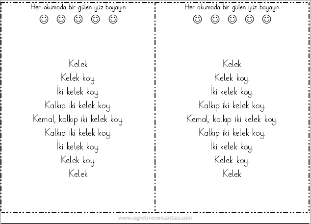 Karesel Hızlı Okuma Metinleri K Harfi (Tüm Harflerden Sonra)