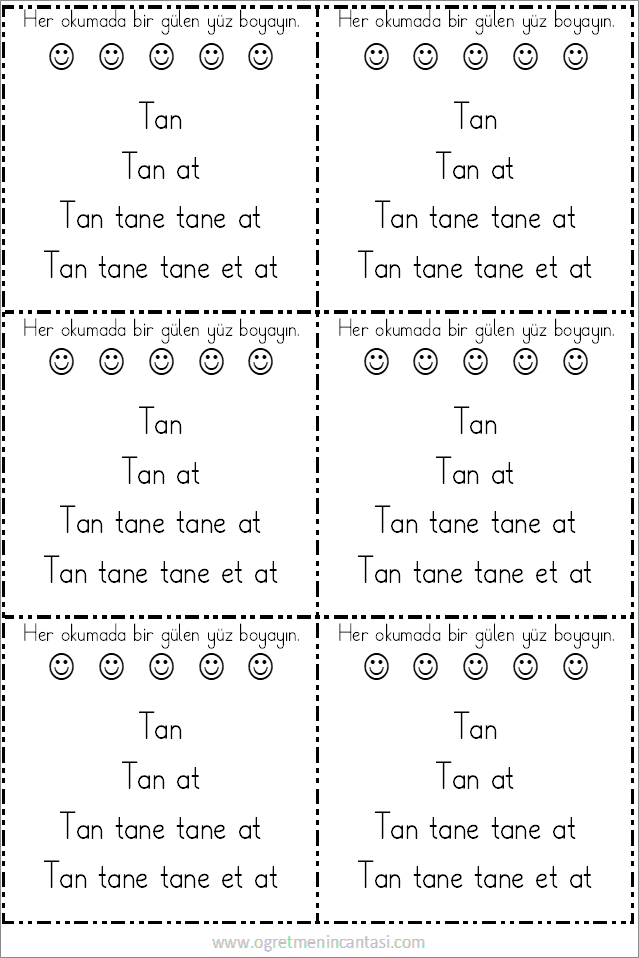 T harfi hızlı okuma metinleri, her bir sayfa 6 öğrenci içindir. Kolay kelimelerle oluşturulmuş karesel metin hazırlığı olarak değerlendirilebilir. Okumanın takibi için gülen yüz boyanma bölümü eklenmiştir. Üç farklı sayfaya aşağıdan ulaşabilirsiniz. Faydalı olması dileğiyle.
