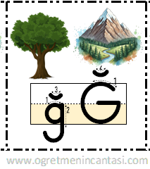 Ğ harfi deftere yapıştırma görseli. Bir sayfaya 12 yerleştirme yapılmıştır. Sınıf sayınıza göre çıktı alabilirsiniz. Faydalı olması dileğiyle.