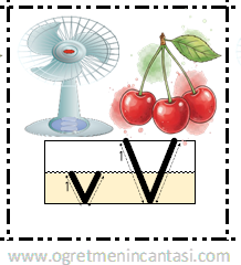 V harfi deftere yapıştırma görseli. Bir sayfaya 12 yerleştirme yapılmıştır. Sınıf sayınıza göre çıktı alabilirsiniz. Faydalı olması dileğiyle.