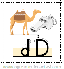 D harfi deftere yapıştırma görseli. Bir sayfaya 12 yerleştirme yapılmıştır. Sınıf sayınıza göre çıktı alabilirsiniz. Faydalı olması dileğiyle.